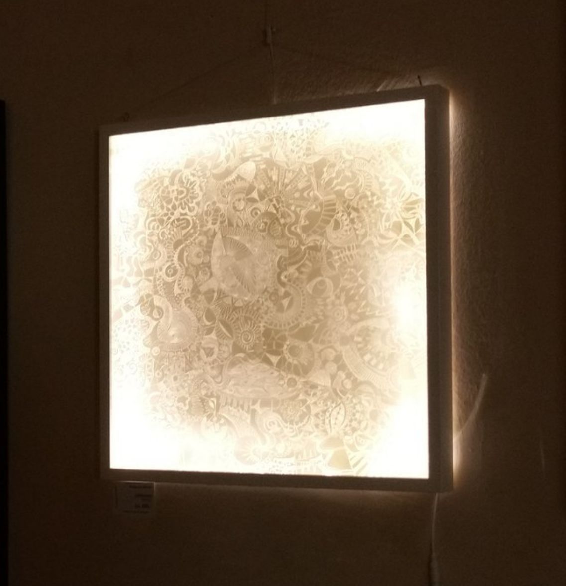 Meine persönliche Lieblingsvariante ist das Naturlicht, indem das Eikonogramm vor eine Fensterfläche gehängt oder gestellt wird.