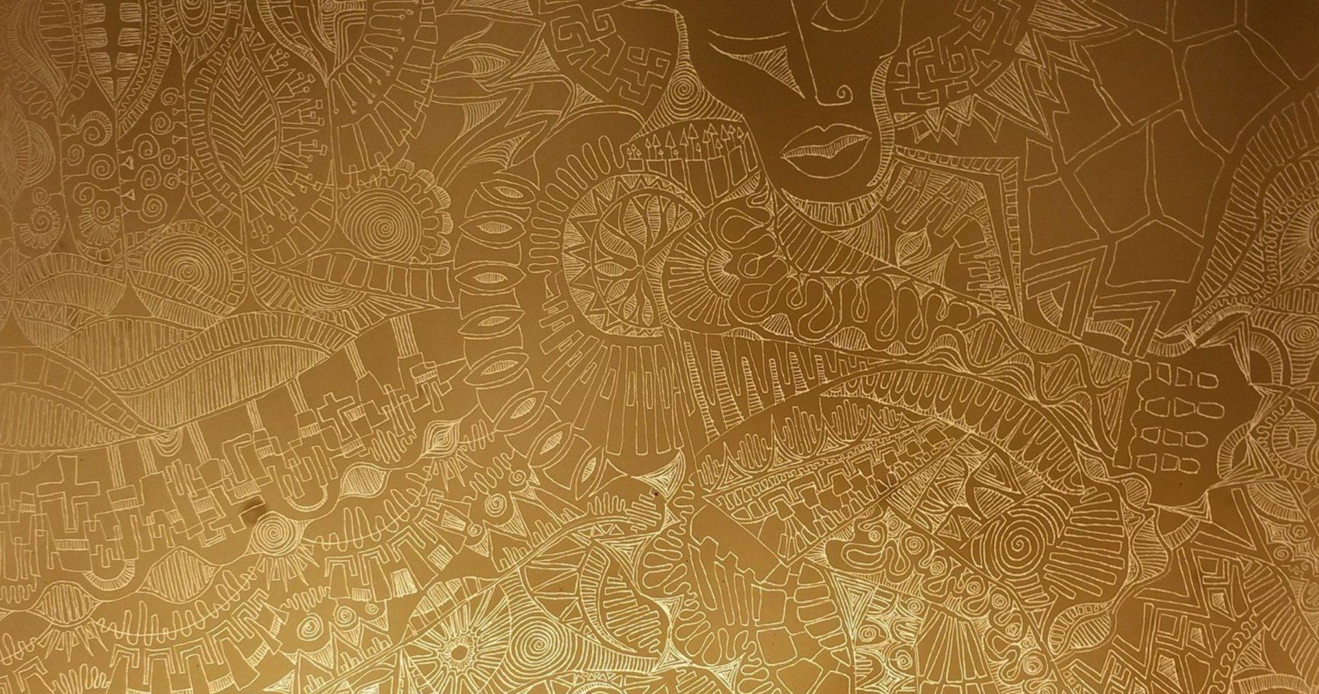 Das Bild zeigt eine tanzende Figur in einem floralen Umfeld.
